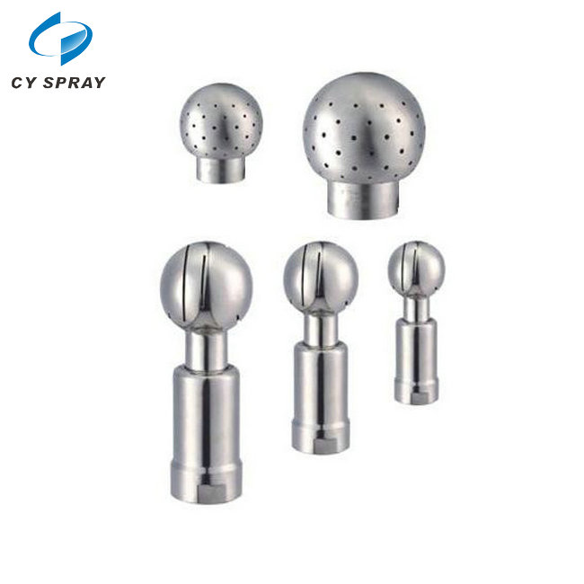 Made of SS304 / SS316L stainless steel. It consists of a piping post and a ball with many holes. The ball can be in round or oval shape, also can rotate in 360 degrees. Cleaning liquid is injected out of the ball to the tank inside wall under pressure. Therefore the tank inside can be washed automatically. Hygienic rotary spray cleaning balls are part of CIP system and are widely used hygienic industries like bevery, brewery, chemical and bio-technology, and pharmacy, etc.